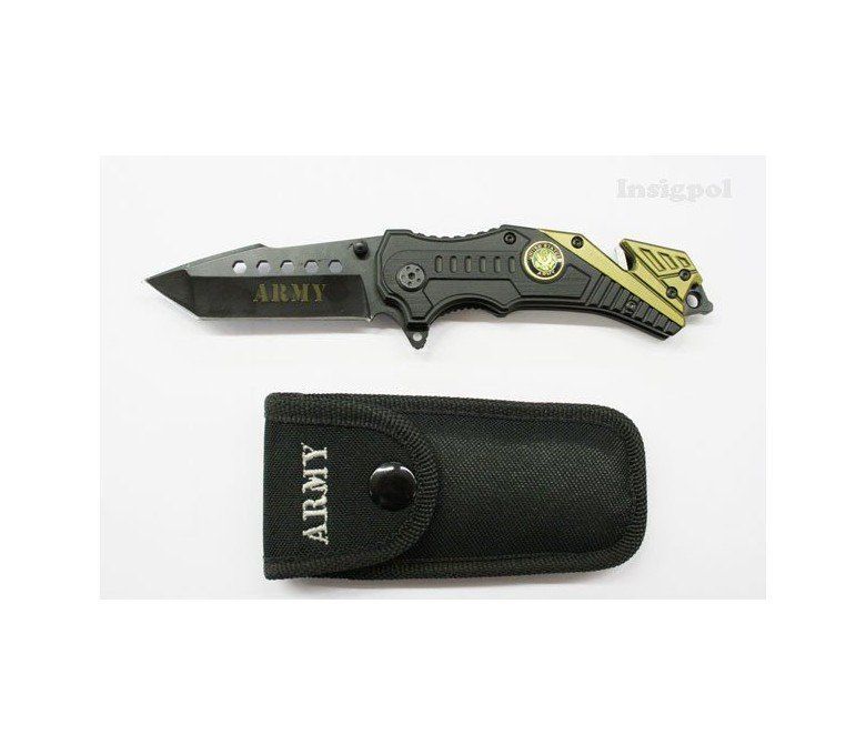 UNITED STATES ARMY KNIFE WITH CASE. Blade size: 7.80 cm. Total length: 19 cm. It includes blade for cutting belts and breaking glasses. It only weighs 126 gr.