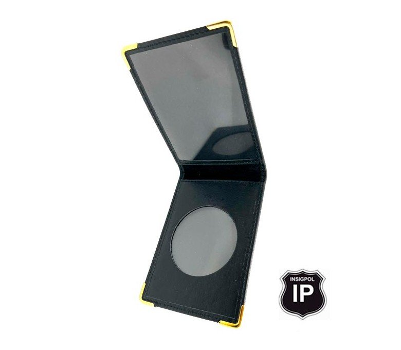 LEATHER CASE FOR 5 CM DIAMETER EMBLEM. Size (folded): 9.50X6.50 cm. Suitable for  5 cm diameter emblems. Cow leather.