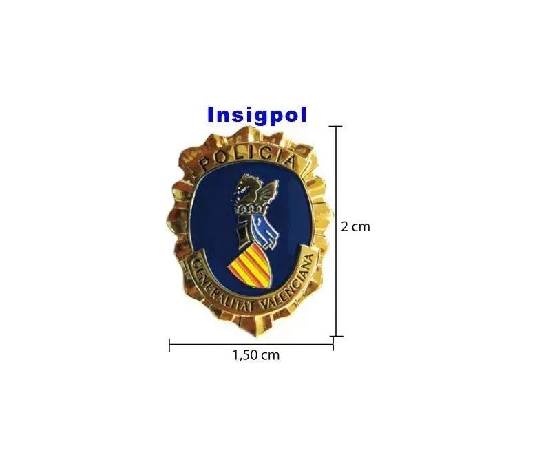 Esta insignia es un símbolo representativo de la Policía de la Comunidad Valenciana, España. Tiene unas medidas de 1,50 x 2 cm, lo que la convierte en una pieza elegante y discreta. La insignia está diseñada para ser usada en trajes de gala, tanto en la solapa como en la corbata, ofreciendo un toque distintivo a los uniformes.